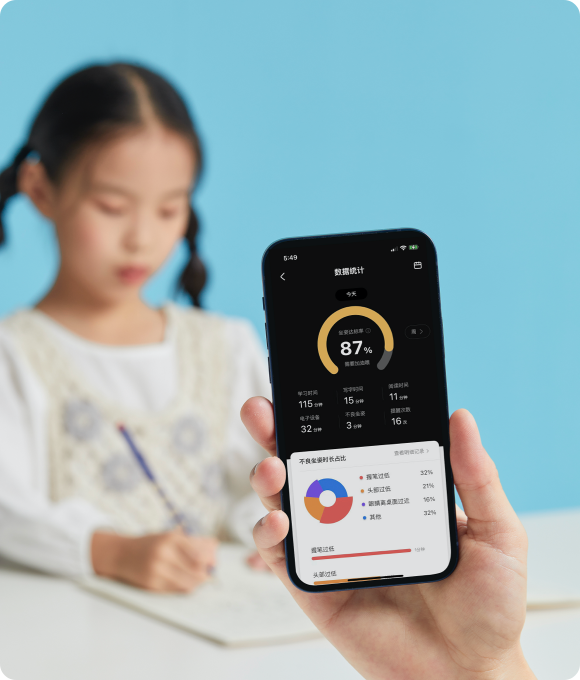 识别多种不良坐姿 / 智能场景识别 / 久坐提醒 / 数据分析